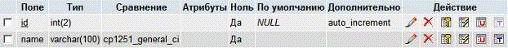 перечнем возможностей, например, создать таблицу, редактировать и удалять