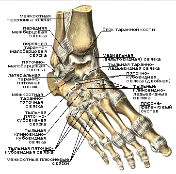 суставов - голеностопный, подтаранный, таранно-пяточно-ладьевидный,
