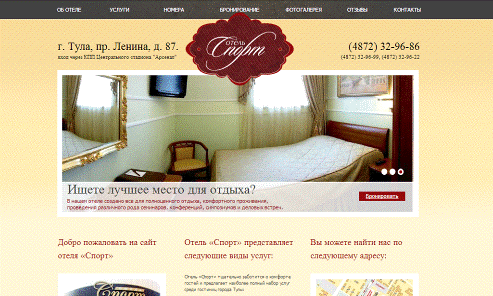примеров элементов сайта отеля "Велнесс" (Тула)