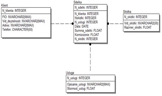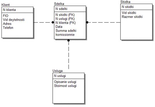 «Скидка», «Услуга» и «Сделка», между которыми установлены неидентифицирующие