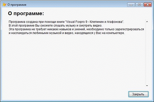 OF сервис PROMPT "О программе"SELECTION BAR 1 OF сервис do form sys(5)+"\Kursovaya\Programm\spravka.scx"SELECTION