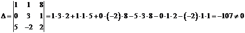 0, можно найти единственное решение по формулам Крамера: