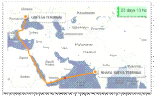 из них была выбрана рациональная: порт Нхава Шева (Индия) - порт Одесса