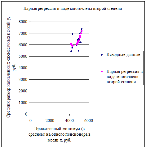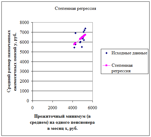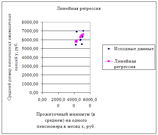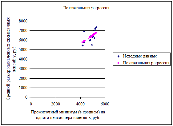 назначенных ежемесячных пенсий y, руб.