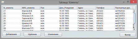 данными: id_клиента, Ф.И.О., дата рождения, пол, адрес, телефон, паспортные