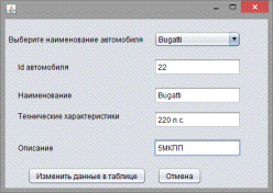 данных в таблице, изменить выбранную из списка запись, введя новые значения.