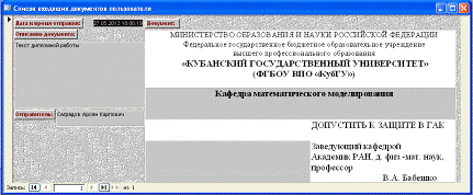 «(Пользователь. [Код пользователя]=Документ. Отправитель)