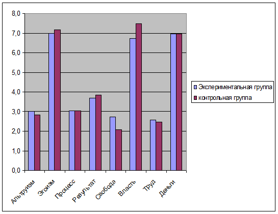 Средние значения по критериям, полученным при помощи опросника структуры