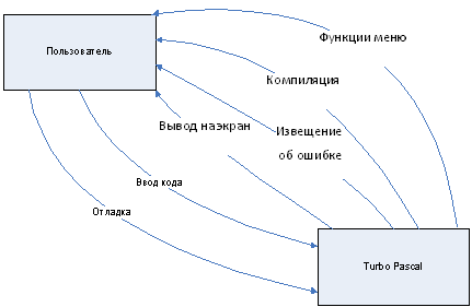 Рис. 2. Контекстная диаграмма потоков данных в программе "Turbo Pascal"