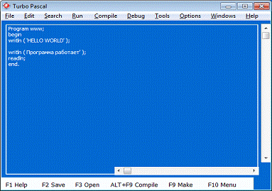 ошибок "Turbo Pascal" выведет результат готовой программы на экран.