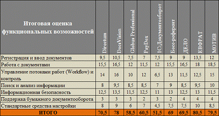 вошли системы Directum, DocsVision, МОТИВ и ЕВФРАТ. Остальные системы