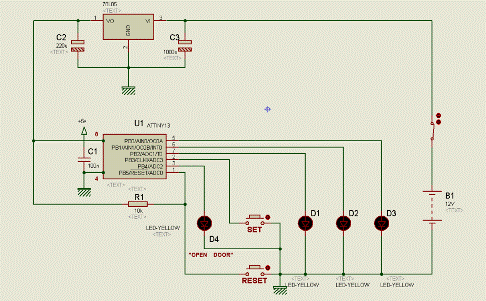 систему кодового захисту з однією кнопкою на мікроконтролері ATtiny13. Розробка