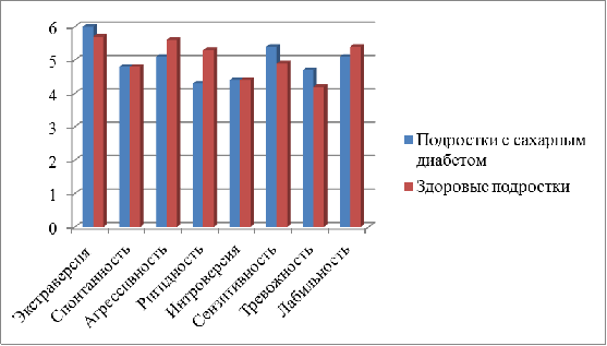 процессов и свойств личности подростков, больных сахарным диабетом 1 типа /