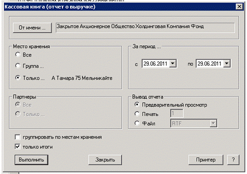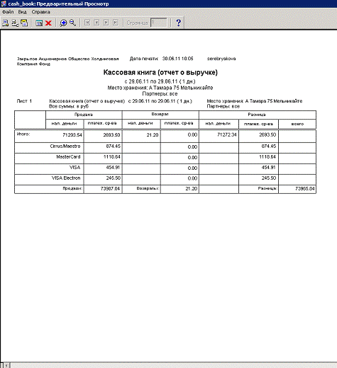 Наименование отчета ->Кассовая книга (отчет о выручке)