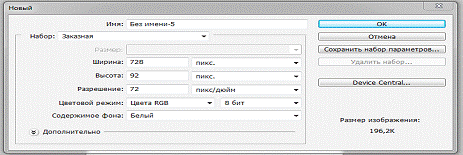 Создаем новый файл размером 728*90, цветовой режим - RGB.