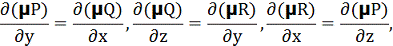 µ(x, y, z) такий, що rot µF = 0, тобто поле µF потенційне. Звідси, для множника µ маємо рівняння: