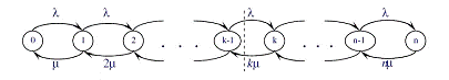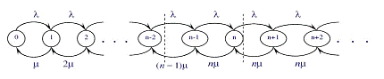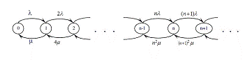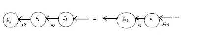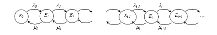 соответствует рождению, а переход из Ei в Ei-1 - гибели,