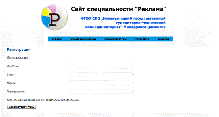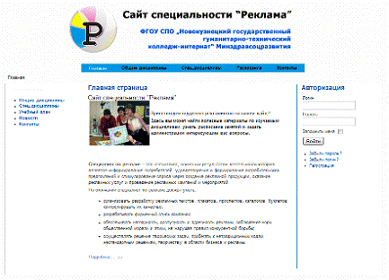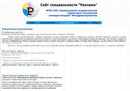 Сайт специальности «Реклама» послужит основой для дальнейшей работы по