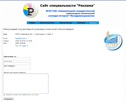 сайта для специальности «Реклама» образовательного учреждения НГТКИ.