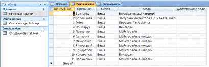 окремій таблиці. При роботі з даними з декількох таблиць встановлюються зв'язки