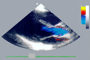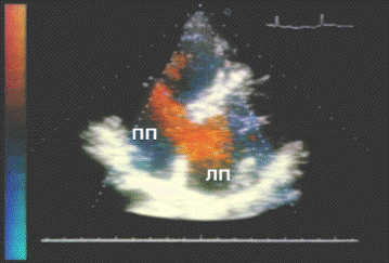 эхокардиограммы видна цветовая шкала потоков и шкала акустической плотности