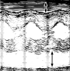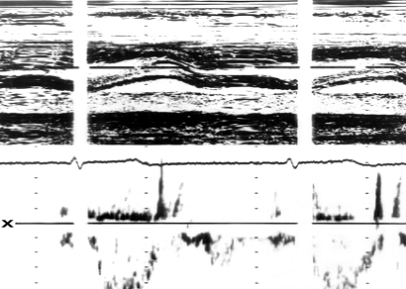 сосудов, которые пересекает ультразвуковой луч. В этом режиме по вертикальной