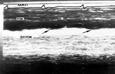 одномерных эхокардиограммах, зарегистрированных на уровне средней трети левого
