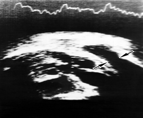 клапана регистрируется эхосигнал повышенной интенсивности (указан