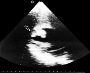 стрелкой) и снижение скорости диастолического прикрытия передней створки