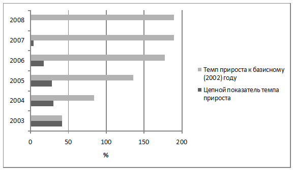 мазута с 69,8% в 2007 до 55,1% в 2008 годах. Рассчитав общие цепные индексы