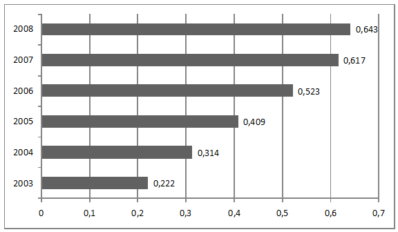 стоимости в 2008 году увеличился до 133,7%, в 2007 году он составлял всего