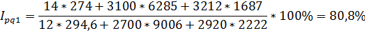 Таблица 5.2 - Расчет индивидуальных базисных индексов по видам продукции