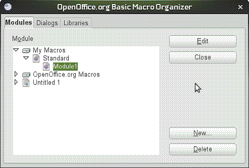 Organizer. безпосередньо у діалоговому вікні "Макроси LibreOffice