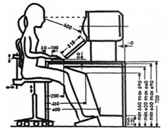 з комп'ютером забезпечується регулюванням висоти робочого столу, крісла та