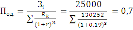 отримає 1,7 грн. теперішньої вартості доходу. Термін окупності складає - 0,7,