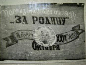китиці, вишито жовтими нитками серп і молот і надпис: « Смерть німецькому