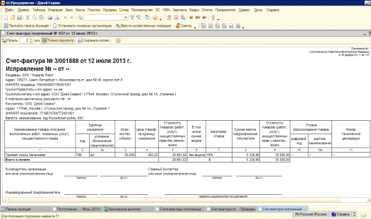 поставщиков, предусмотрен документ «Счёт - фактура полученный». Счета-фактуры,
