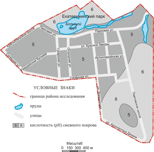 данных составили карту «Кислотность снежного покрова города Пушкин».