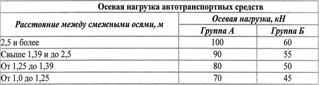 полностью загруженного автомобиля по группам: группа А - до 52 т, группа Б - до