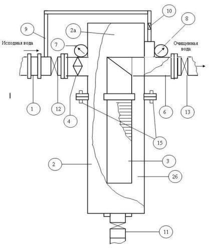 Для очистки фильтрующего элемента -2, проводят периодическую промывку его