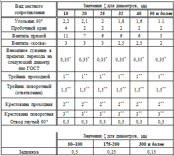 меньшим диаметром; **) ζ - отнесен к участку с меньшим расходом газа.