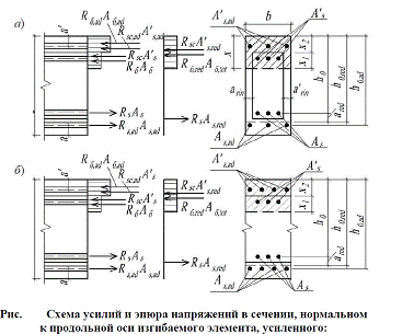 арматуры усиляемого элемента центра тяжести приведенного сеченья растянутой