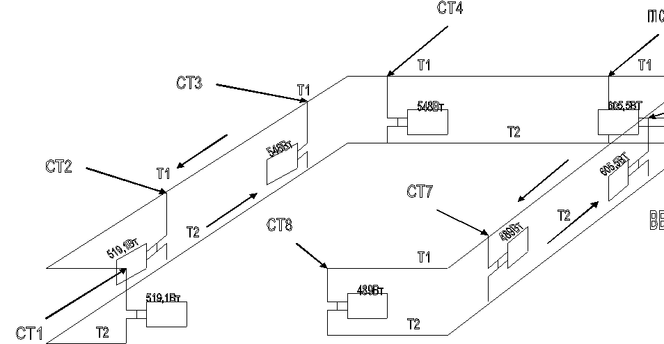 вычерчивается аксонометрическая схема системы отопления. На схеме изображаются