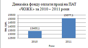 на ПАТ "ЧОЖК", можна зробити такі висновки: фонд оплати праці в 2011