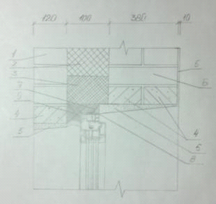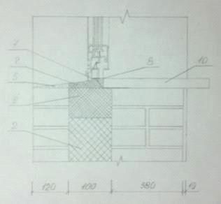 слой); 7 - стальная профильная полоса крепления коробки оконного блока; 8