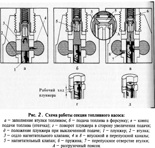 работы в плунжерной паре создается высокое давление топлива. При ее работе