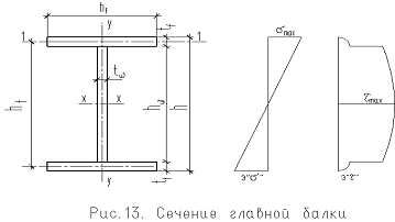 Приняв толщину поясов tf = 20 мм, стенку выполняем из