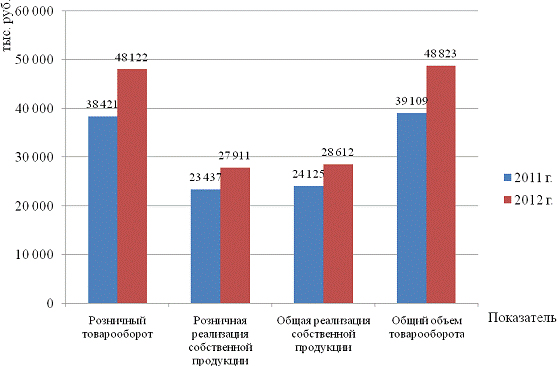 розничному товарообороту - на 0,4 % (на 192 тыс. руб.). Реализация продукции