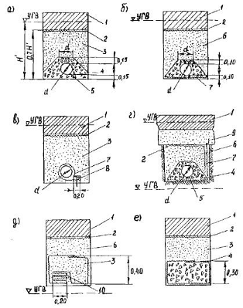 устраивать фильтрующую обсыпку. Возможны конструкции поперечных дренажей (рис.