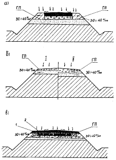 уклоном 10-30 %о поверхность дорожной одежды пучинистого участка. Жгуты из ГМ